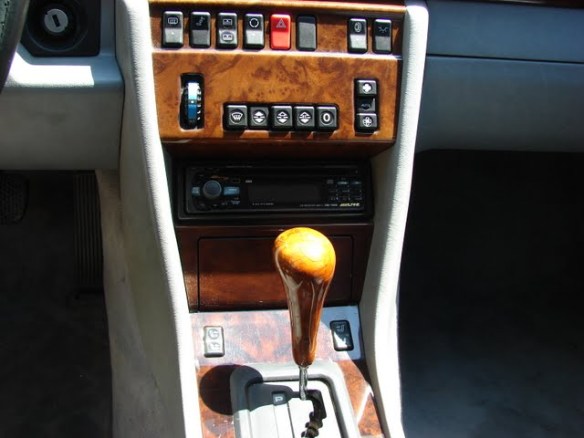 The interiors generally wear extremely well: if anything is going to be bad it will be the driver’s outer upper bolster and/or cracks in the burled wood. Yes, folks, that is real wood. This car has an aftermarket stereo, which is really for the best since replacement of the original Beckers through 1993 is a royal pain due to the fact that they are 2-part radios with a head unit up front and an amplifier in the back. Once you rid the car of that system you should be good to go, and with modern radios you can get iPod hookups and stuff!