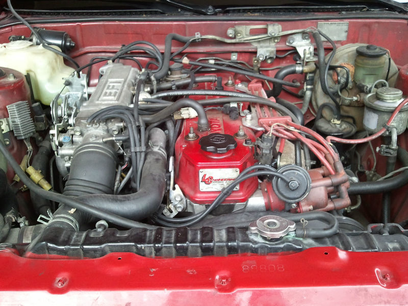 This car represents the third generation of Toyota Celicas, and the last of the rear-wheel drive cars in the line. Handling is well-balanced, although the convertibles do feel markedly heavier than the hatchback or notchback versions. The steering has variable-speed assist which is a little numb at low speeds but at is firms up feels distinctly sporting. The interior is very 1980s Toyota, which is to say that angles and acres of plasticky plastic abound. This car has had substantial interior refurbishment, but looks very presentable. Likewise the paint is recent – hopefully not masking horrific bondo-laden metalwork. The aftermarket stereo is unfortunate, but is most certainly an improvement in sound quality over the factory unit. Being a double-din chassis, options for audio upgrades are somewhat limited. The seller reports that the convertible top, heat and AC work, making this a very usable car year round.