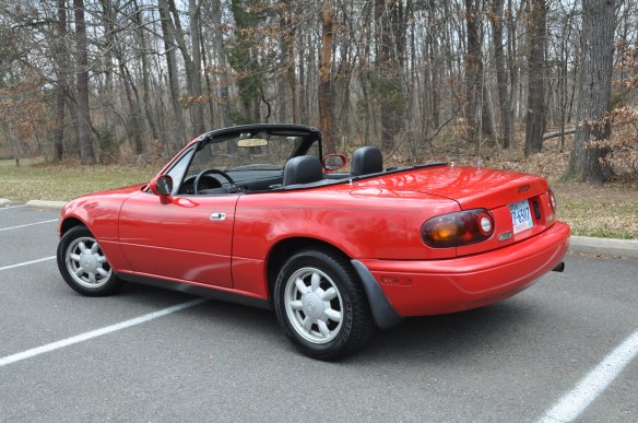 First things first: this is shameless self-promotion. I own this car, for the time being. You see, I have an addiction to buying and selling cars. There should be a support group for this, but I fear it would turn into one big swap meet. In any case, my wandering eye has me contemplating something entirely different, which puts this little sweetheart of a car on the market. I love Miatas, and they remain some of the most automotive fun you can have for the low prices they command. This particular example is a nice, clean honest one that has not been thrashed, torn, ridden hard and put away wet, or been adorned with bits and baubles like body kits and wing spoilers. In fact, it looks pretty much the way it did when it rolled off the dealer’s lot 19 years ago. Find it here on eBay in Fairfax, VA with a buy it now price of just $4295.