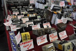 As I have said before when writing here about TCE, it’s not just the cars. There are seemingly hundreds of parts vendors hawking parts for all sorts of cars, mine included. I actually negotiated the seller of these rare twin round European headlights for Mercedes W123s (like my 300D Turbodiesel) to a fantastically reasonable 80 Euros for the pair, only to think better about it when I had to figure out how to get them home. I’ve got no more luggage capacity, and shipping would be cripplingly expensive. Ah, well. I did manage to get some interesting European brochures for cars I either have or like at sub-eBay prices. There are also guys selling art, model cars, clothing, and…..