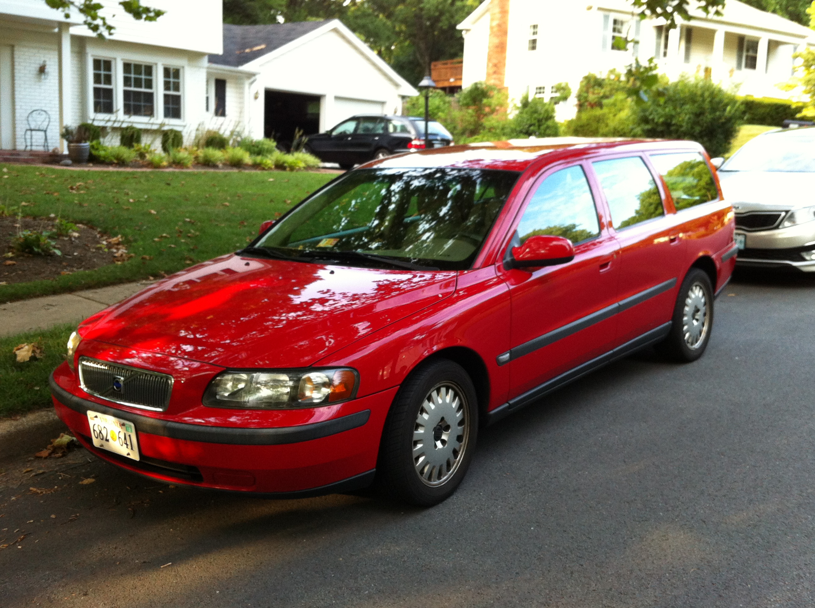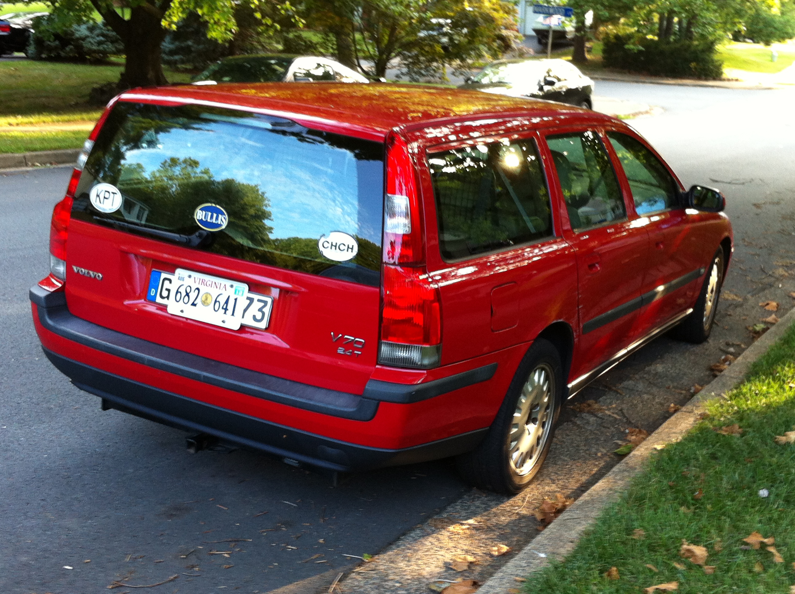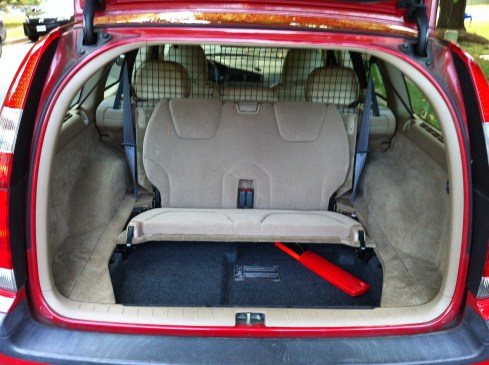 There are a few reasons this particular car appealed to me, besides the fact that I know the only owner it’s ever had. First, it has the rare rear-facing third seat option – which Volvo stopped offering with the current model. To me, it’s that seat that made cars like the V70 (and our 2005 Mercedes E320 Wagon) viable alternatives to the dreaded minivans and SUVs by letting them carry up to seven people, so long as two of them are less than about five feet tall. Second, it is already equipped with a professionally-installed hitch. We’ve recently gotten pretty active as a family with bicycling, but have been somewhat limited to our immediate surroundings because we don’t have a car capable of carrying more than one bike at a time, and I don’t really want to cut up the bumpers on any of the other cars we have. Problem solved. Third, the Classic Red is a rare hue on these cars. I am told it was only available on European delivery cars, but I haven’t been able to confirm that. Regardless it stands out in an ocean of silver, black, grey, and white cars.