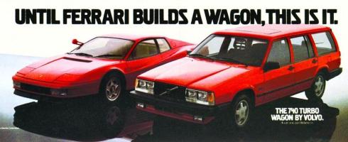 So what to do with it? I could drive it for a while and take care of the few little maintenance items it needs (timing belt, MAF sensor, and a few other bits), then sell it on hopefully at a profit (and I promised a nice meal for my friend – and I should include his wife as well – if I make a healthy profit on it). Or, I can build a Daddy-wagon. Everyone talks about station wagons as Mommy cars, but why can’t I have a Daddy wagon? Admittedly, I got the idea when checking out the IPD Volvo Parts website, and stumbled on their ECU upgrade that adds 33hp to the 2.4T with a simple reprogramming. Add some nice wheels, exhaust, intake, and maybe a roof rack and rear spoiler, and this car has the potential to be a cool wagon along the lines of the red Volvo 740 Turbo wagon from the company’s late-80s ad campaign. Ooh the possibilities!