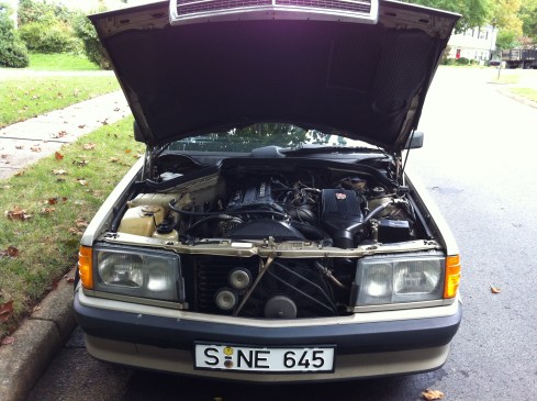 I bought the latest pseudo-project – my 1986 Mercedes-Benz 190E 2.3-16 Cosworth – knowing full well that it had needs. For what I paid I didn’t expect perfection, and I was not disappointed. The good part of the car is that the motor was rebuilt about 30,000 miles ago including replacement of the very expensive Cosworth 16 valve cylinder head with a brand-spanking-new one from Mercedes. It runs like a scalded ape – once it’s warmed-up, that is. Cold start is not this car’s strong suit, but after a couple of minutes it’s fine. The transmission shifts beautifully, and the great-when-it-works rear self-leveling suspension works perfectly. The only things I’ve done under the hood are new rubber weatherstripping and a new under-hood insulation pad. Neither was critical, but they make me happy. The not-so-good on this car is all cosmetic, but no more than skin-deep.