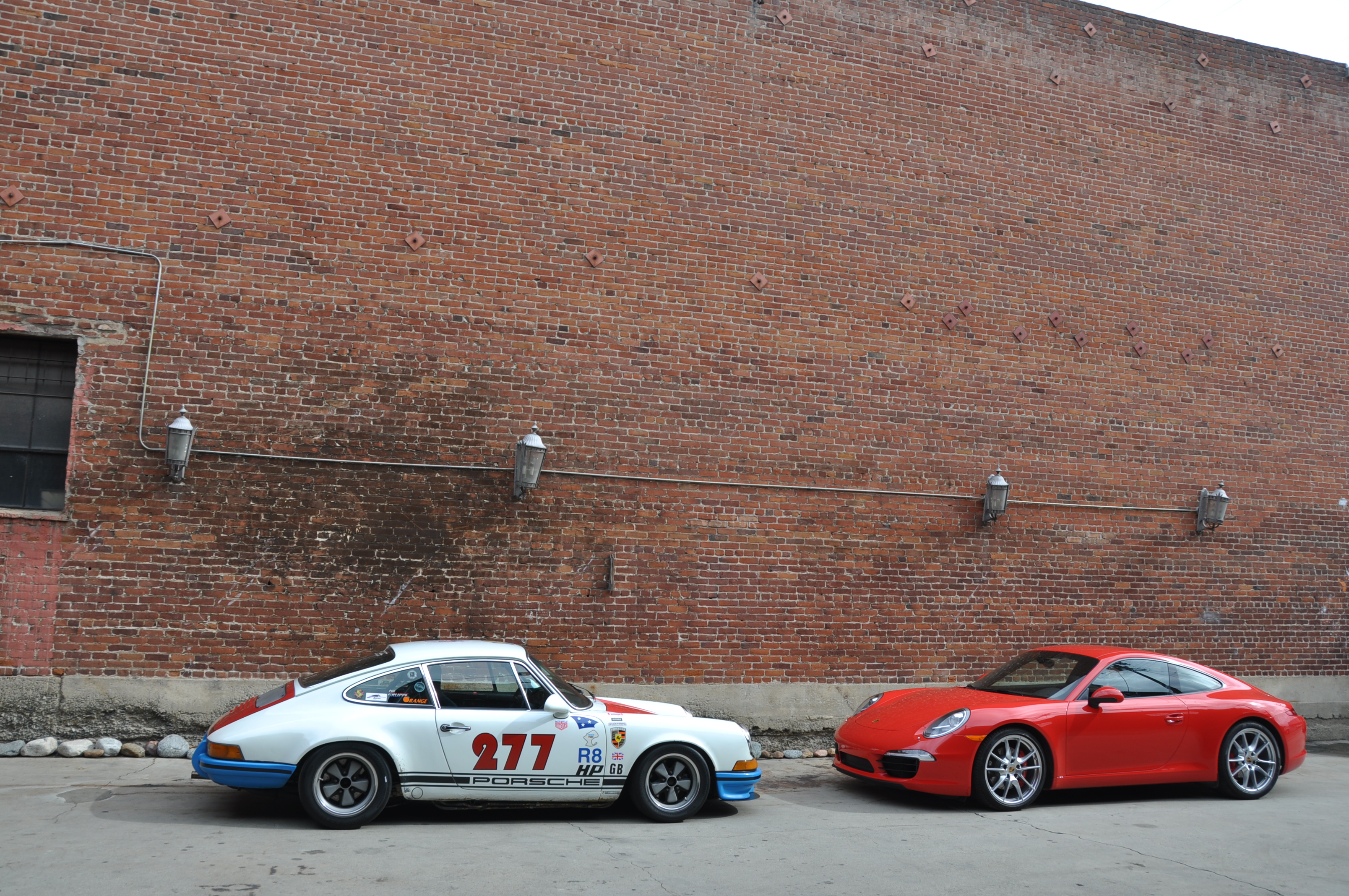 What struck me before I ever sat in the car is that 911s have grown. Interestingly, to look at the numbers they’re not THAT much larger than the original car that bore the 911 moniker – 10mm here, 18mm there, and so on. But to add it all up cumulatively and combined with the fact that both ends sit much higher than the original air-cooled 911, the new car is comparatively tubby (see photo comparison with one of Magnus Walker‘s very cool cars below). In some ways that’s not a bad thing. For example, there were two of us plus luggage, camera gear, etc. basically living out of this car for three days and it had no problem accommodating us. Likewise, you get a more airy sense of cabin space from the shoulders up in the new car than the old. For claustrophobics and personal space fiends like me, this is welcome growth.