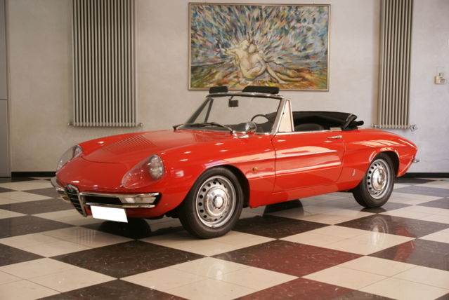 Before I go any farther I want to get the round tail’s nomenclature straight: “Duetto” refers to the earliest of the series with its twin cam 109hp 1570cc motor with twin Weber carburetors. In late 1967 Alfa fitted their 1779cc 118hp motor which retained the dual Weber setup in Europe but for U.S. cars changed over to the love it or hate it Spica mechanical fuel injection (for 1969 and on into S2 kamm-tail production). With the new motor the car became officially known as the 1750 Spider Veloce, although a lot of folks – including Alfisti – refer to all of the round tail cars as Duettos. Just to add to the confusion, a smaller-engine version – the 1300 Junior – was added to the lineup for 1968 and 1969 looking every bit like the rest of the range but lacking some of its bigger brother’s equipment including the headlight covers, brake servo, and the opening quarter windows. It also delivered only 89hp from its 1290ccs, which made a sprightly car a little lethargic. All told, round tail Spider production lasted four model years from 1966 through 1969. With all that said, the car I want is a Duetto – the original 1600cc version.