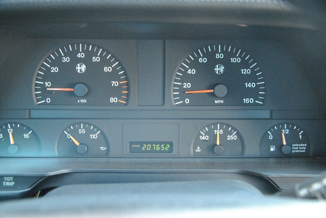 The car is said to be a one-owner, garaged, unmolested example, with a pile of paper work and a laundry list of repairs, which could just be normal maintenance on a 20-year-old Italian sedan. Hot ticket mechanical items like the clutch, steering rack and cooling system are complemented by those things that are merely annoying like a window regulator and power seat control panel. The engine was rebuilt 4000 miles ago, which could be the result of 203,000 digital clicks or a snapped timing belt. Or both. Make no mistake – the timing belt on these powerplants is not to be trifled with.