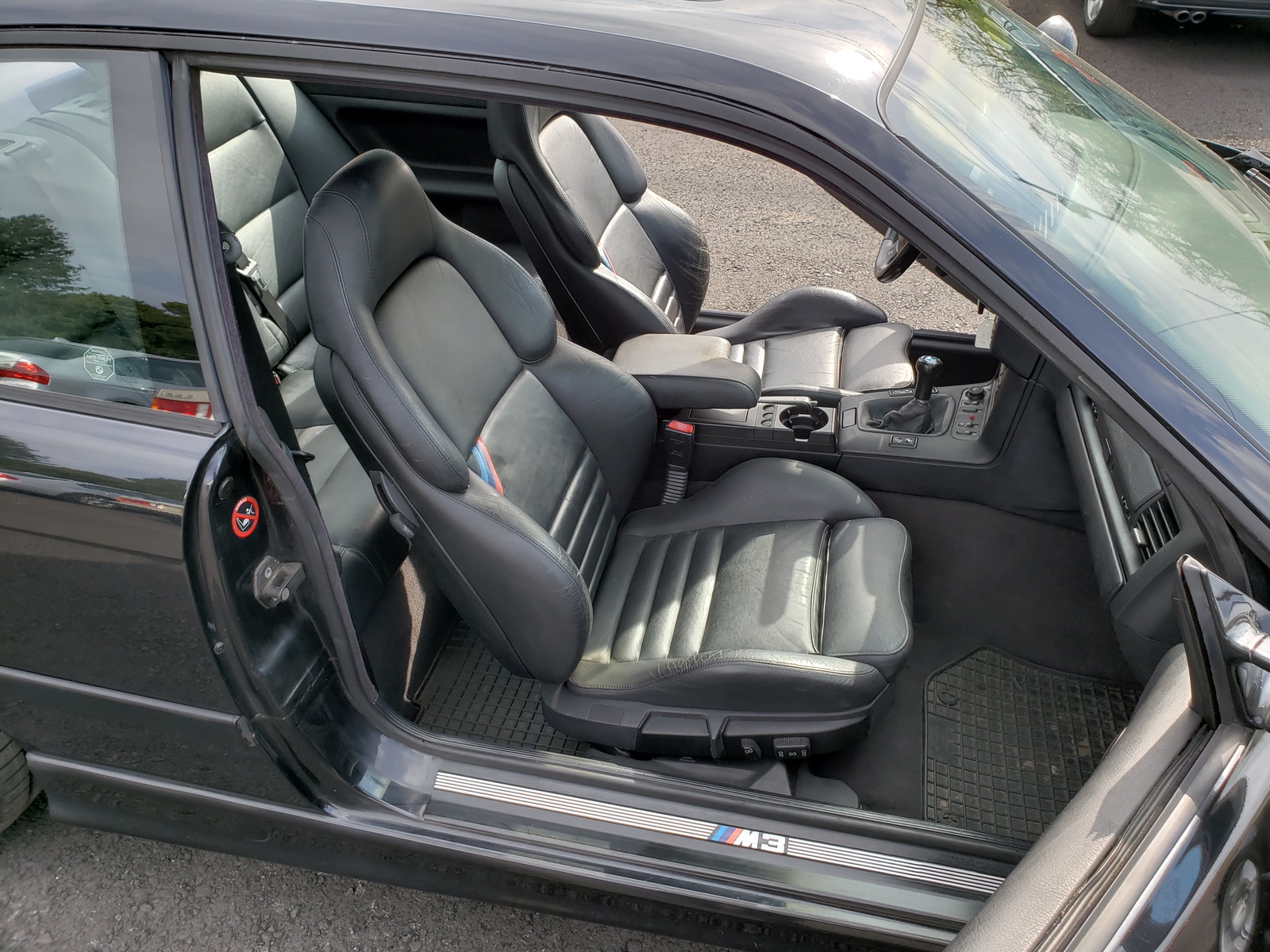 “Very clean and well cared for 1999 BMW M3 Coupe. The paint is in great shape and body is just as nice with no rust. The interior shows some wear with some stitching coming loose on the seats and the material shrinking on the door panels, common to the E36. The headliner has been redone and is nice. We have known and serviced this car for quite some time. We just had it through our shop and installed new Continental tires. This has HK sound, heated seats, fold down rear seats, cruise control, 18 button OBC, and very rare staggered light weight wheels. If you are looking for a nice driver E36 M3 than this is the car for you. $8,995.”