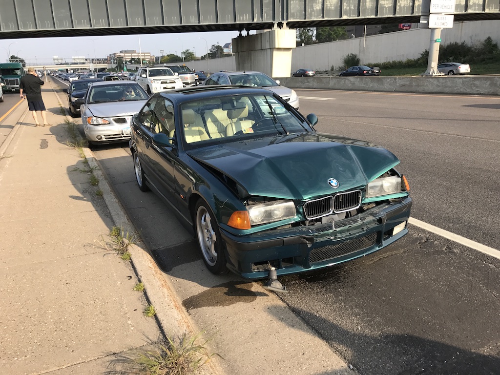 The unending list of frustration was cut short by a lady with a cat on her lap driving a Pontiac Grand Am causing a five-car accident, with me conveniently in the middle. Sad, but my M3 is now a race car, which is probably the best thing that could have happened to it.