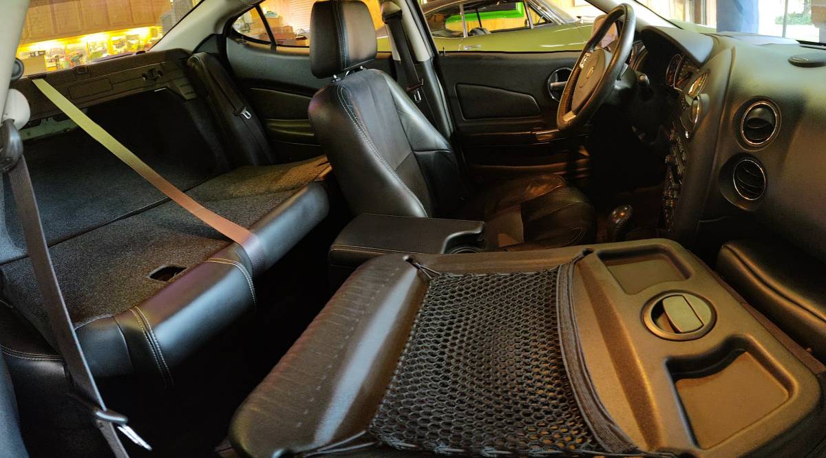 Speaking of features, there are a few worth talking about here. The first is a heads-up display, projecting MPH, heading, and outside temperature onto the windshield just below the driver’s line of sight. The next is the fold-forward passenger seat. This is one of those dumb things I’d mock except I lived with one for 15 years in our 2004 Toyota Matrix XRS. It’s actually really handy for transporting long objects, and combined with the Grand Prix’s fold-down rear seat makes this sedan much more useful.