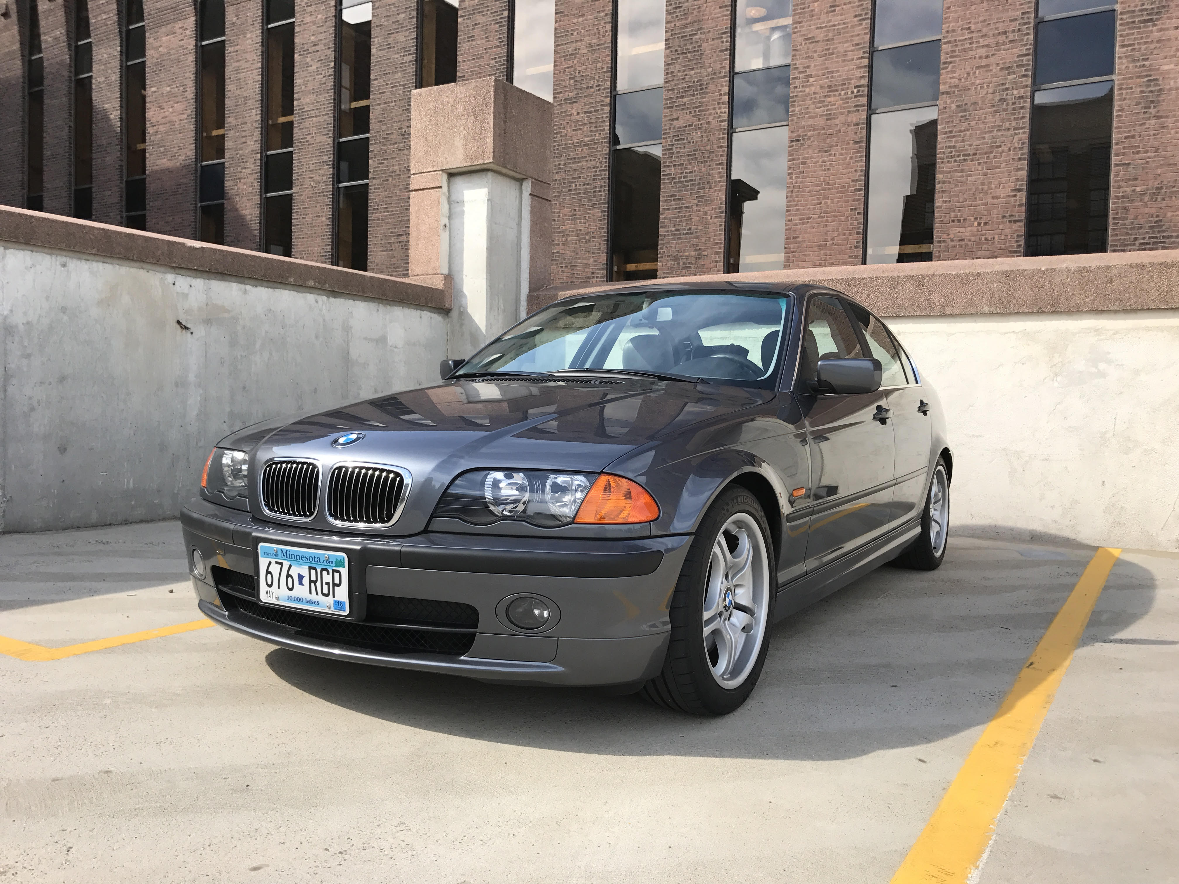 This 330i was ordered just how I would have, had I been buying in 2001, except for the color (gray on gray is a lot of gray); standard Sport Package, three-pedal 5-speed, seat heaters, moonroof, and Harman Kardon sound. The first owner did, in fact, order this car. He was a fanatic about maintenance and repair. Later in his ownership when the wheels got a little tired, he just ordered five new factory wheels from BMW. The second owner, the gentleman from whom I bought the car, was a senior service advisor at the BMW dealership where the car was ordered and serviced. All its life it has received whatever it wanted.