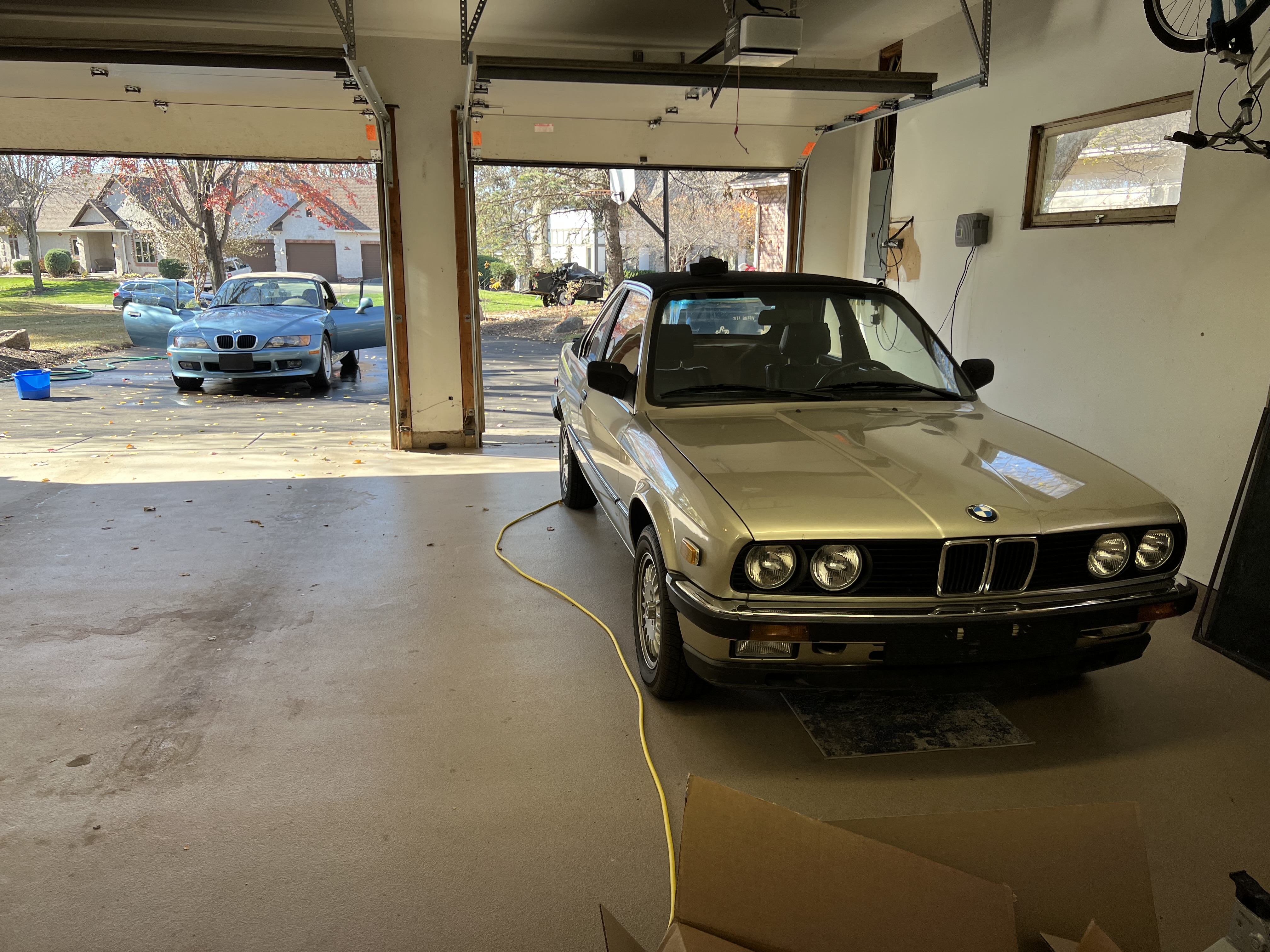 Shifting exactly .5 miles east netted us a couple more bathrooms and, more importantly, a large three-car garage. Indeed, if I kept the Datsun 1600 Roadster or BMW Z3 (foreshadowing!) I could have put either on rollers and placed one sideways in the back of the garage, albeit eating up all the work space. The only things the garage lacked were good lighting, insulation, and a heater. Those issues were solved last fall.