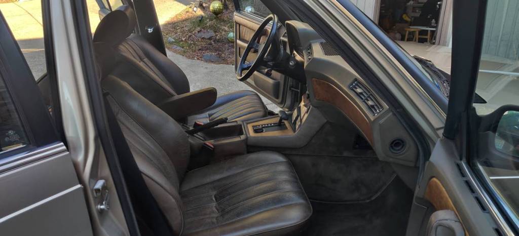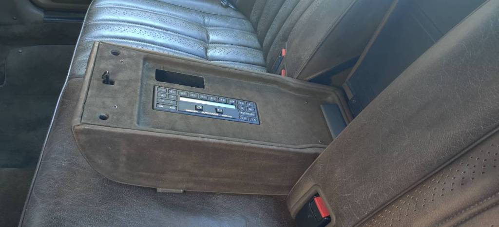 745is came very nicely equipped from the factory as standard, with just a few options such as reclining rear seat, heated seats, rear remote radio control, integrated phone, and buffalo leather upholstery. This car does have the rear radio controls and the buffalo leather, which can be identified by the brown variegated color and unique perforations. Buffalo leather is fabulous when it’s in good shape, but needs to be cared for just like any other leather. It’s thick and wears well, but I’ve seen a lot of dried out, torn up buffalo hide over the years. Thankfully, in this car the upholstery appears commensurate with the low mileage. It doesn’t appear to have the heated or reclining seats or the telephone – which wouldn’t work anymore, anyway!