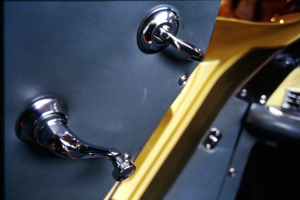 As agreed, the top went up before anything else. A short series of twists and turns secured the convertible top in place. Compared with its contemporaries, the 300SL’s mechanism is a marvel. I remember a friend with an old Healey – it was like wrestling an alligator to raise the top. Once there, it hardly made a difference. In contrast, this top went into the proper position with ease, and once secured seemed almost vault-like.