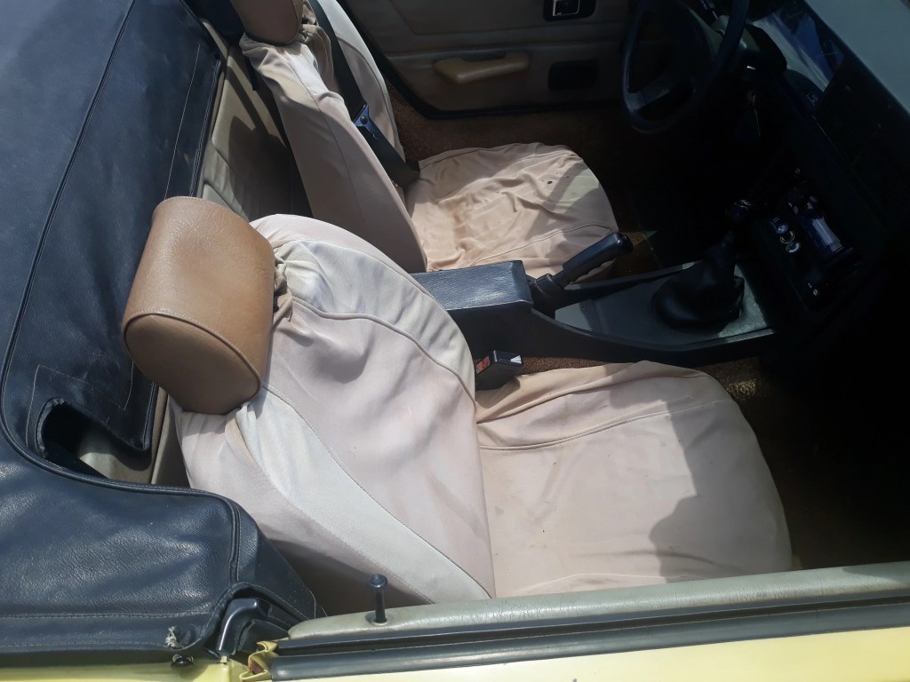 This example at first glance presents fairly well. The paint is shiny and the original wheels look nice. The interior isn’t completely thrashed. Under the hood seems clean but not Armor Mauled. By the pictures we’re looking at some cosmetic requirements to include a bit of upholstery and a headliner, at least a partial paint correction, and sourcing several small trim bits that may or may not still exist in the wild.