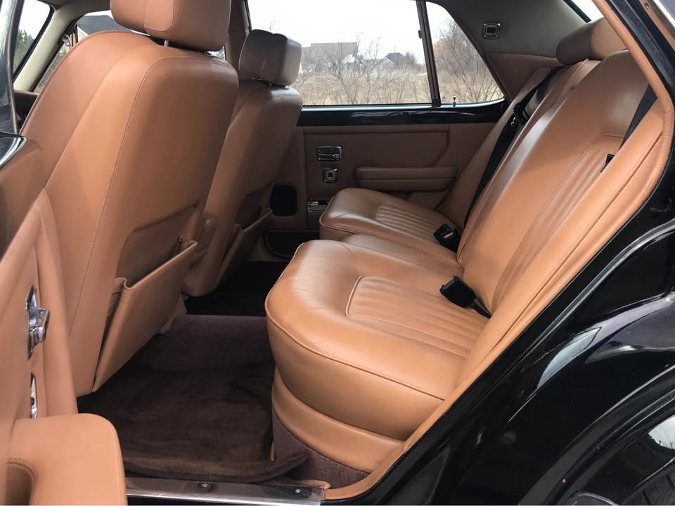 For the year and miles, not to mention the fact it may be offered by a used car lot that doesn’t appear to have a website, this Bentley looks the absolute business. The black paint, the brightwork, the racy mesh grille, and the 17-inch alloy wheels give it a charming yet menacing look. Credit also the four piercing round headlights that for 1989 replaced the carline’s flush lamps.