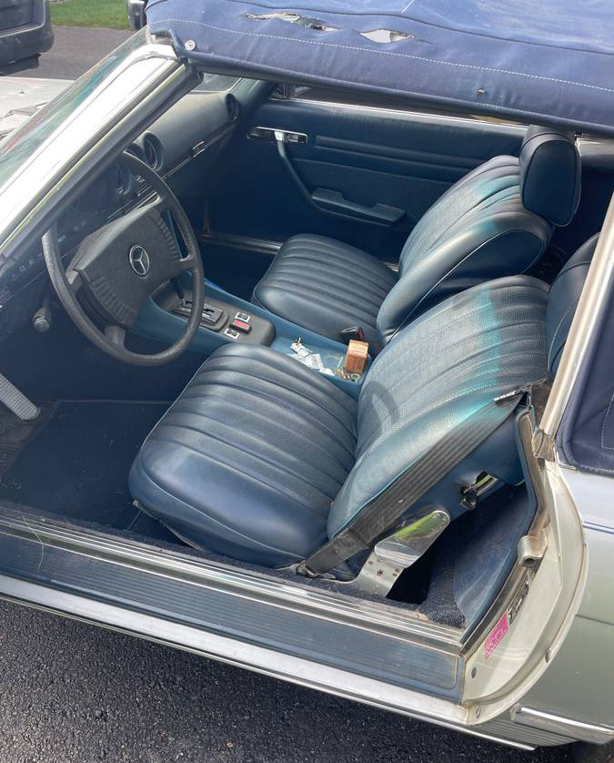 If you did save it, you could feel good about driving it all the time. Moonshot miles notwithstanding (240,000+), it doesn’t look terrible under the hood, though the seller says the car could stand some maintenance. The heater works and maybe the tushy warmers do too. The top and rear window appear in good shape so there is a non-zero chance the weather would stay outside. The paint shines well enough but boy could the body use some new roundels. Maybe some love on the front bumper, too.