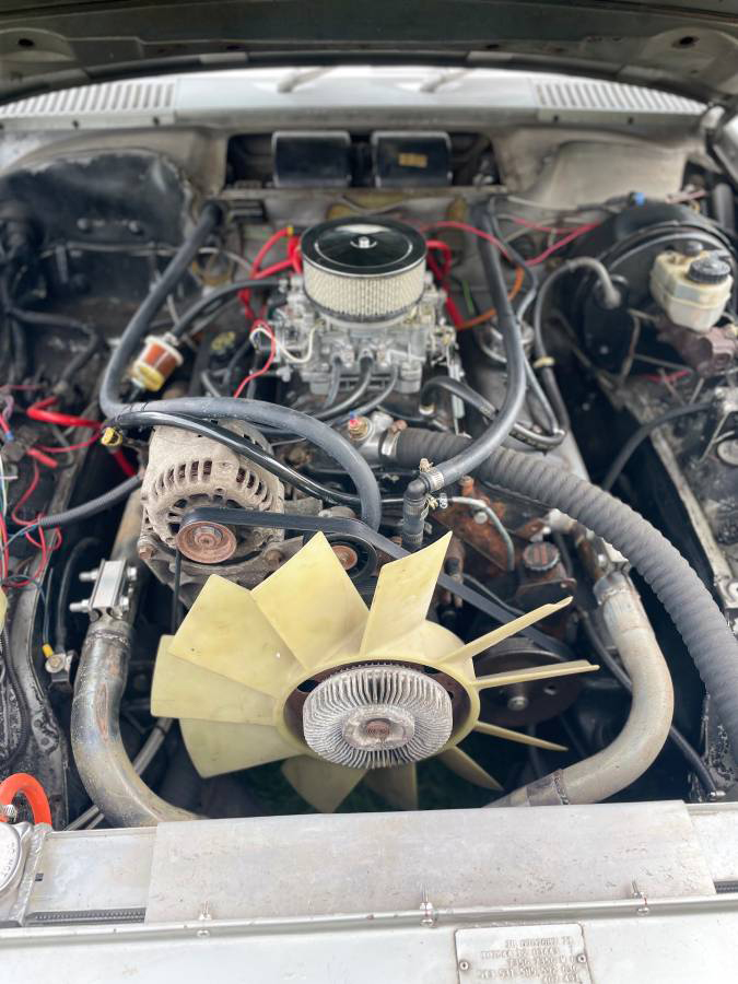 Behind Door #1 is the 1976. Something must have happened to the original 4.5-liter M117 V8 lump as it’s been replaced with a Vortec 4.3-liter V6 from something in the General Motors fleet. It’s backed by a TH350 automatic transmission and topped with a four-barrel carburetor. Basic? Sure. Effective, too, I’d think since the engine weighs less than stock but makes more power. It sure does look a little lost in the engine bay, however.